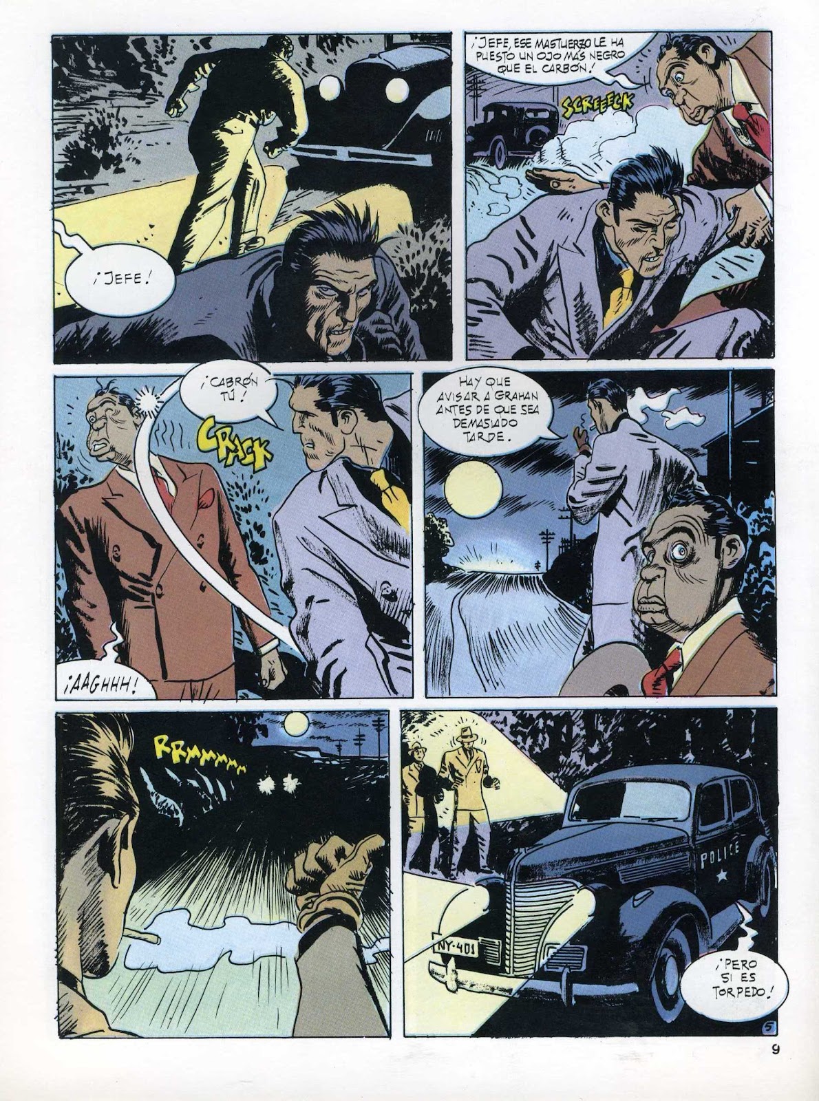 En realidad, la serie con Bernet, pasó de ser buena a ser magistral. La nueva combinación Abulí & Bernet supuso el embrión de un nuevo clásico, no sólo ya del cómic español sino también del cómic mundial. Dicha combinación resultó ser mágica; por un lado, teníamos a un guionista -Abulí- influenciado por lo mejorcito de la novela negra (imagine el lector los nombres que más rabia le den), con veinte años de guiones y traducciones a sus espaldas; y, por otro lado, teníamos a un dibujante -Bernet- que había iniciado su carrera profesional cuando heredó de su padre, Jorge, a la malvada Doña Urraca. Luego, podemos afirmar que Bernet ha cargado con dos personajes heredados: Doña Urraca y Torpedo 1936. El primero lo hizo debutar con quince años en la emblemática revista Pulgarcito, y el segundo lo ha consagrado mundialmente en el noveno arte.
