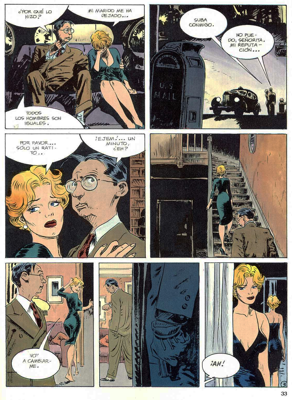 Otro detalle, del que no me quejo, es que el parecido de las mujeres en distintas historias. La rubia que Torpedo invita a tocar, al muy joven admirador, se parece mucho a la rubia usada como trampa para el juez. Hasta podría ser la misma rubia.