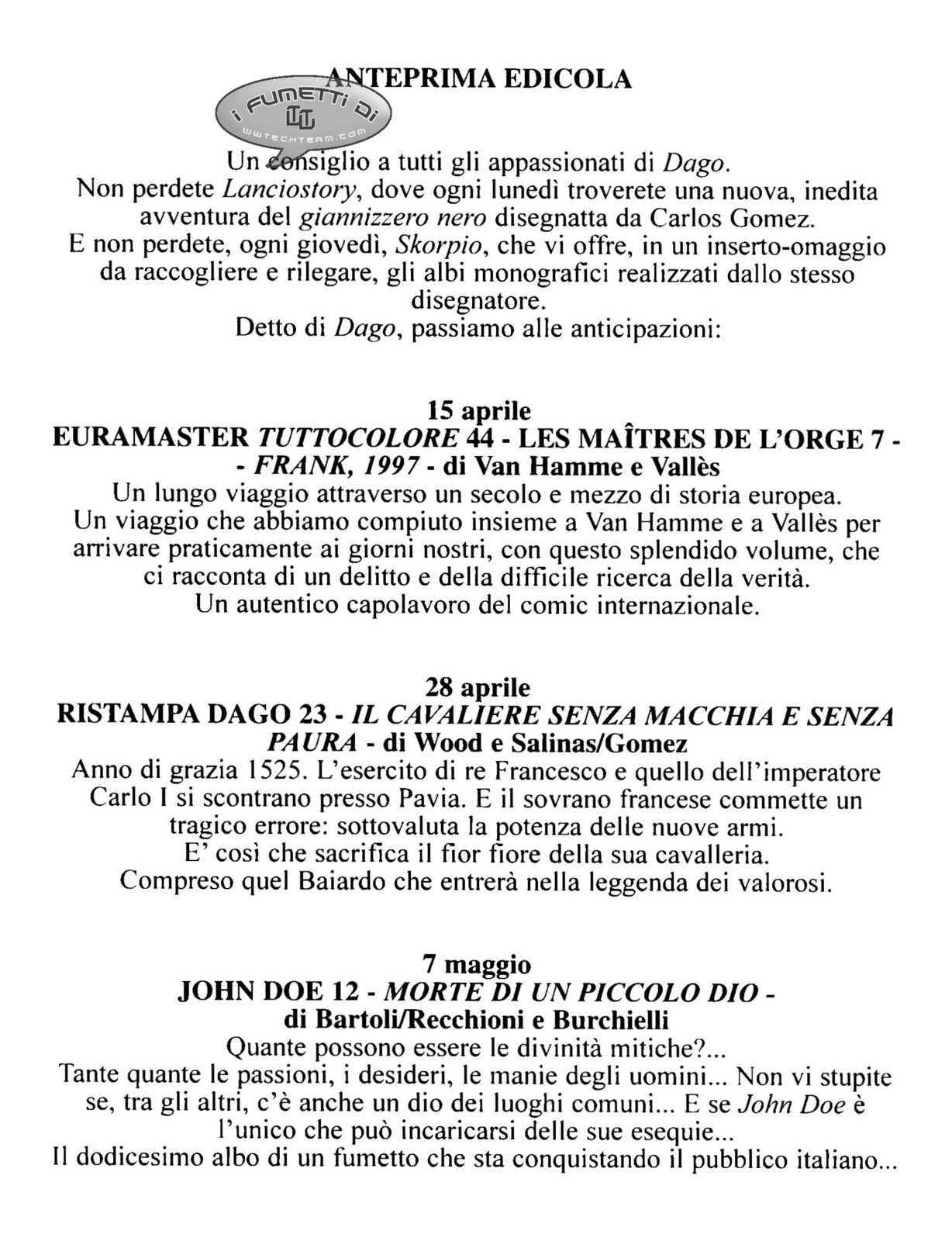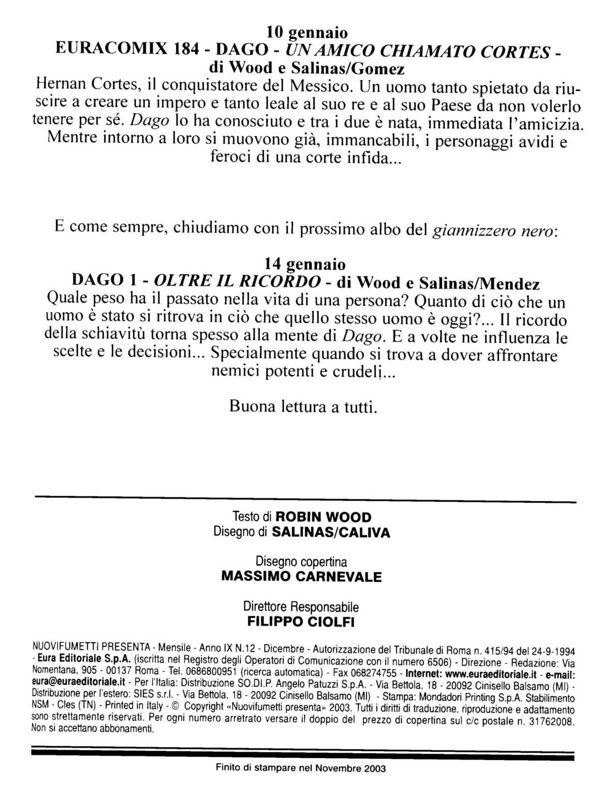 "Dago" es en realidad Cesar Renzi, un noble veneciano que vive en pleno Renacimiento y se ve envuelto en una trama de intrigas políticas, las cuales finalizan con la masacre de su familia. Al principio de la historia es dado por muerto y lanzado al mar con una daga en su espalda. Es en ese momento cuando es recogido por un barco turco y tomado como esclavo. Los turcos lo rebautizan como "Dago", debido al arma blanca que casi le cuesta la vida.